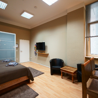 The boutique-apartment is in the residential area of Wilmersdorf. It is 45 qm big and is equipped with 2 living/double-bedroom, a kitchenette and bathroom. The apartment is equipped with 2 SAT-TV. Both rooms are openly connected and have no door. It is a occupancy up to 3 persons possible.